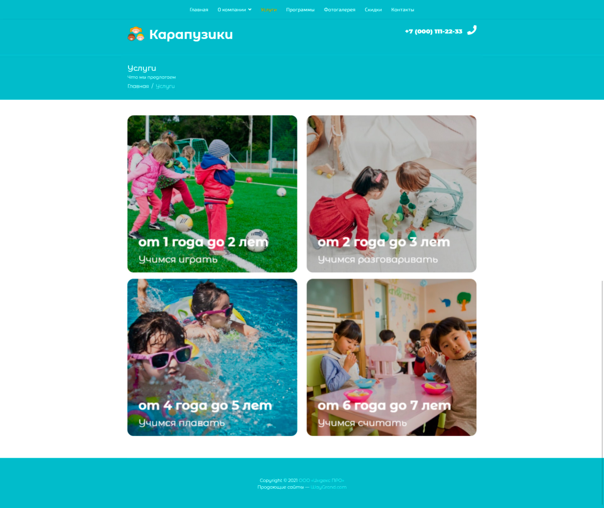 Закажите готовый продающий сайт визитка #0419301 в Волжском за 5-7 дня «под ключ»: свёрстан, отрисован и готов к рекламе. Тематика шаблона «Частный детский центр».