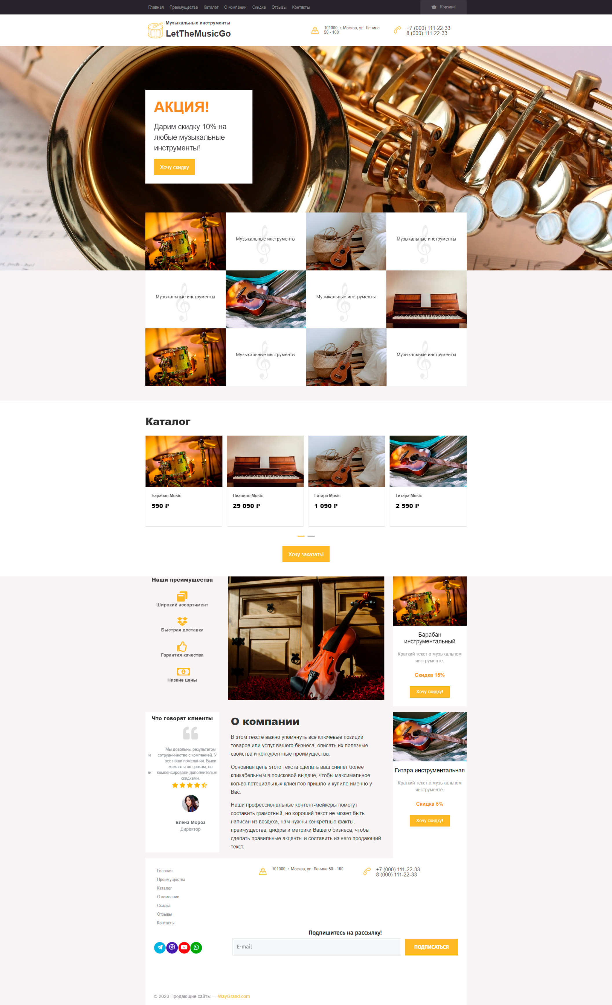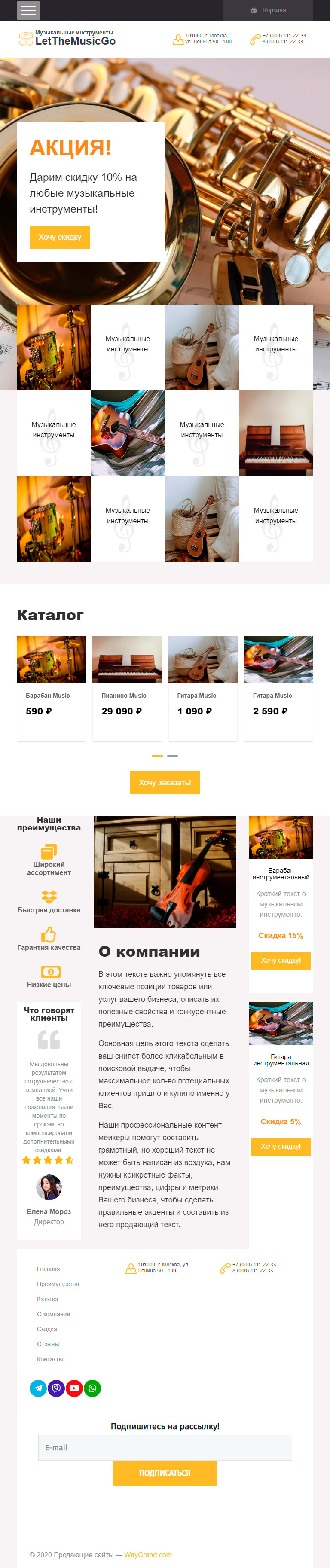Закажите готовый продающий сайт лендинг #0710201 в Волжском за 1-3 дня «под ключ»: свёрстан, отрисован и готов к рекламе. Тематика шаблона «Музыкальные инструменты».