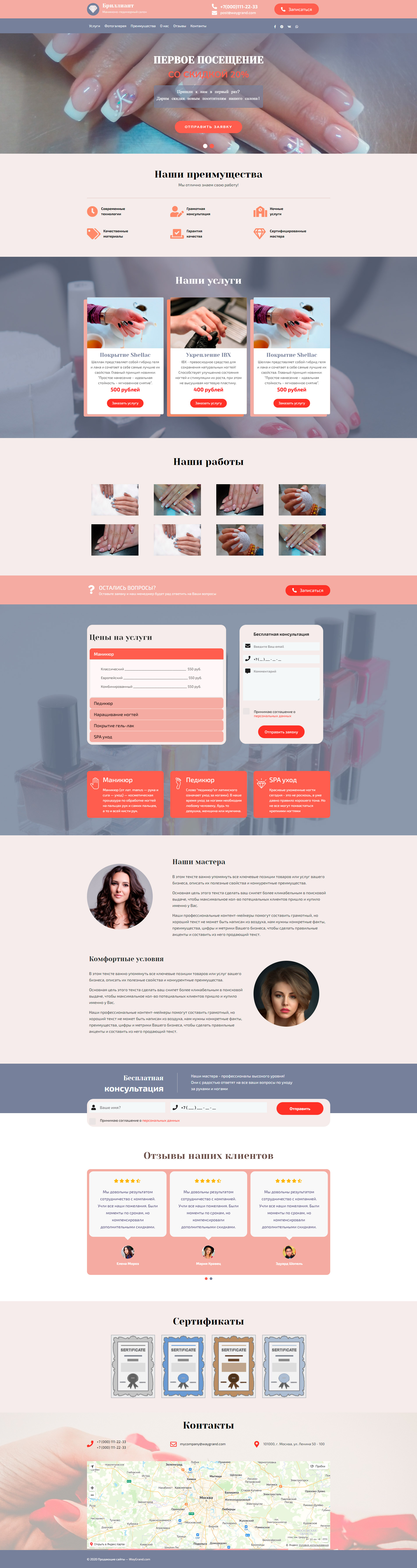 Закажите готовый продающий сайт лендинг #1107201 в Волжском за 1-3 дня «под ключ»: свёрстан, отрисован и готов к рекламе. Тематика шаблона «Салон маникюра и педикюра».