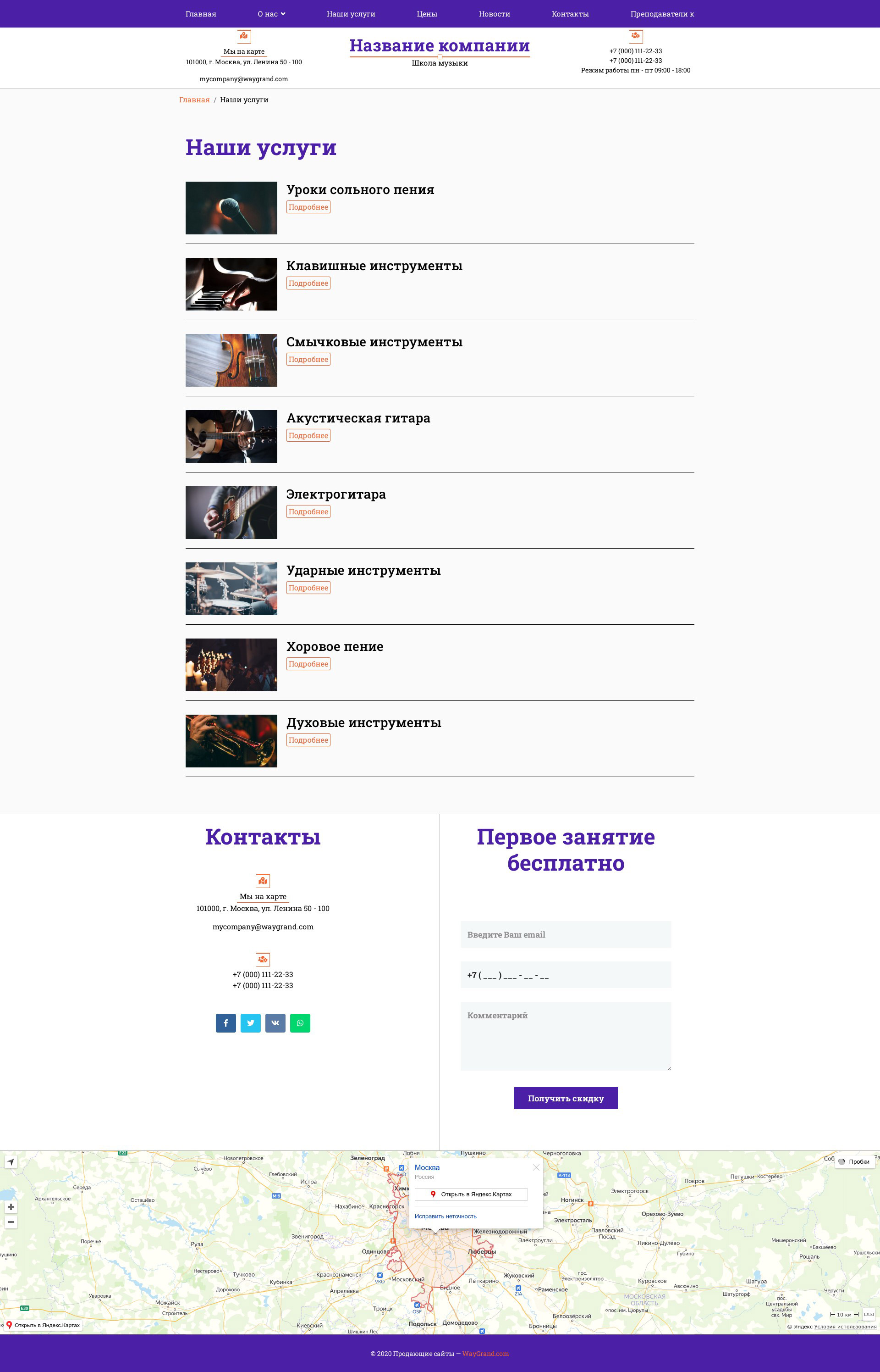 Закажите готовый продающий сайт визитка #1431301 в Волжском за 5-7 дня «под ключ»: свёрстан, отрисован и готов к рекламе. Тематика шаблона «Школа музыки».