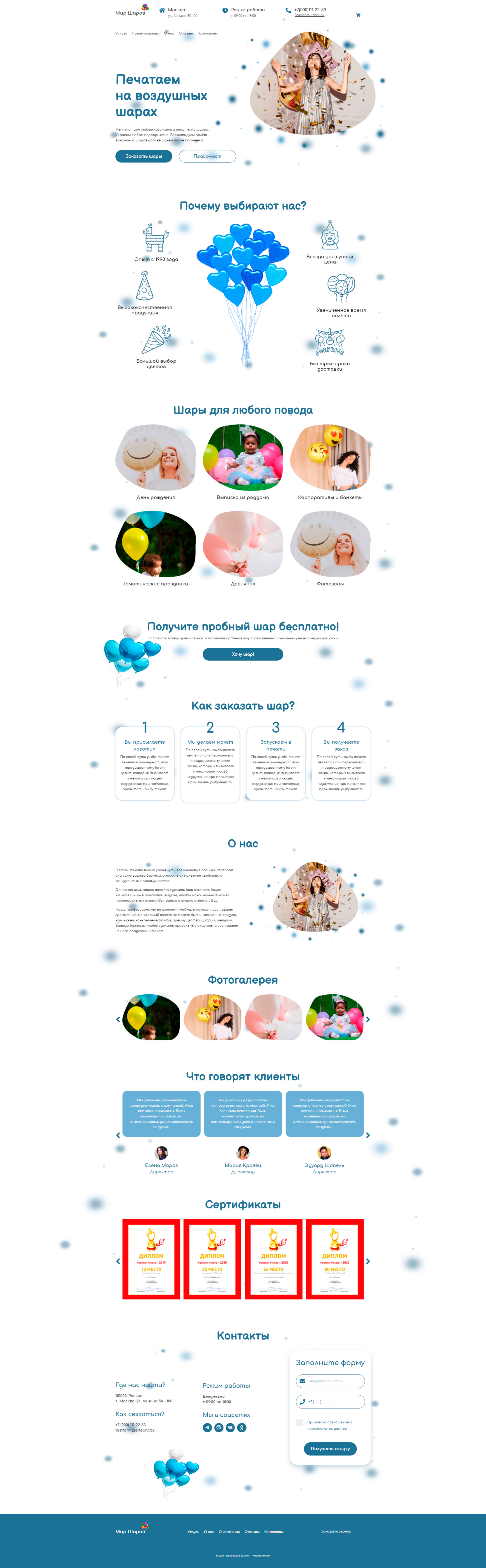 Закажите готовый продающий сайт лендинг #1826202 в Волжском за 1-3 дня «под ключ»: свёрстан, отрисован и готов к рекламе. Тематика шаблона «Печать на воздушных шарах».