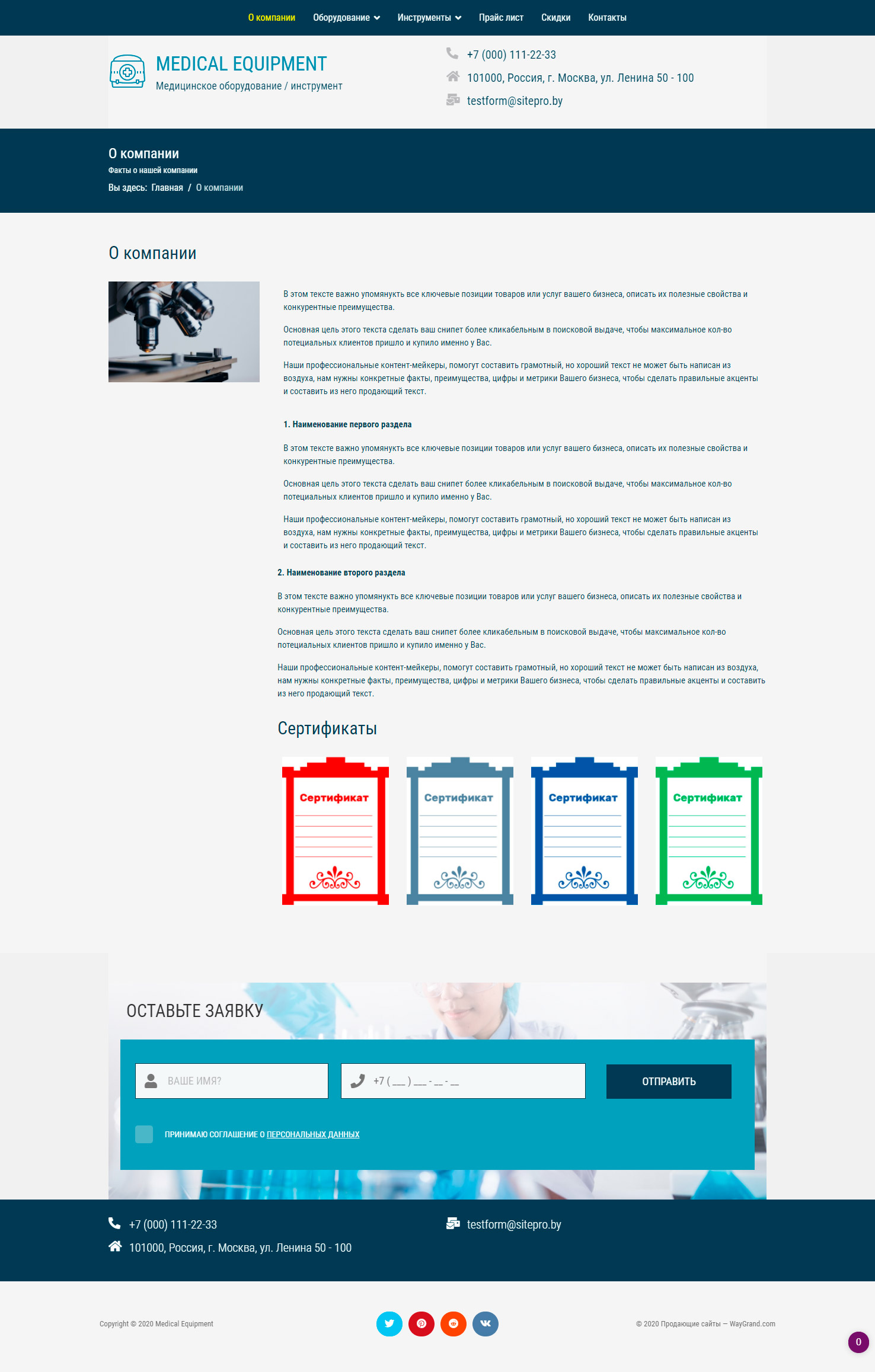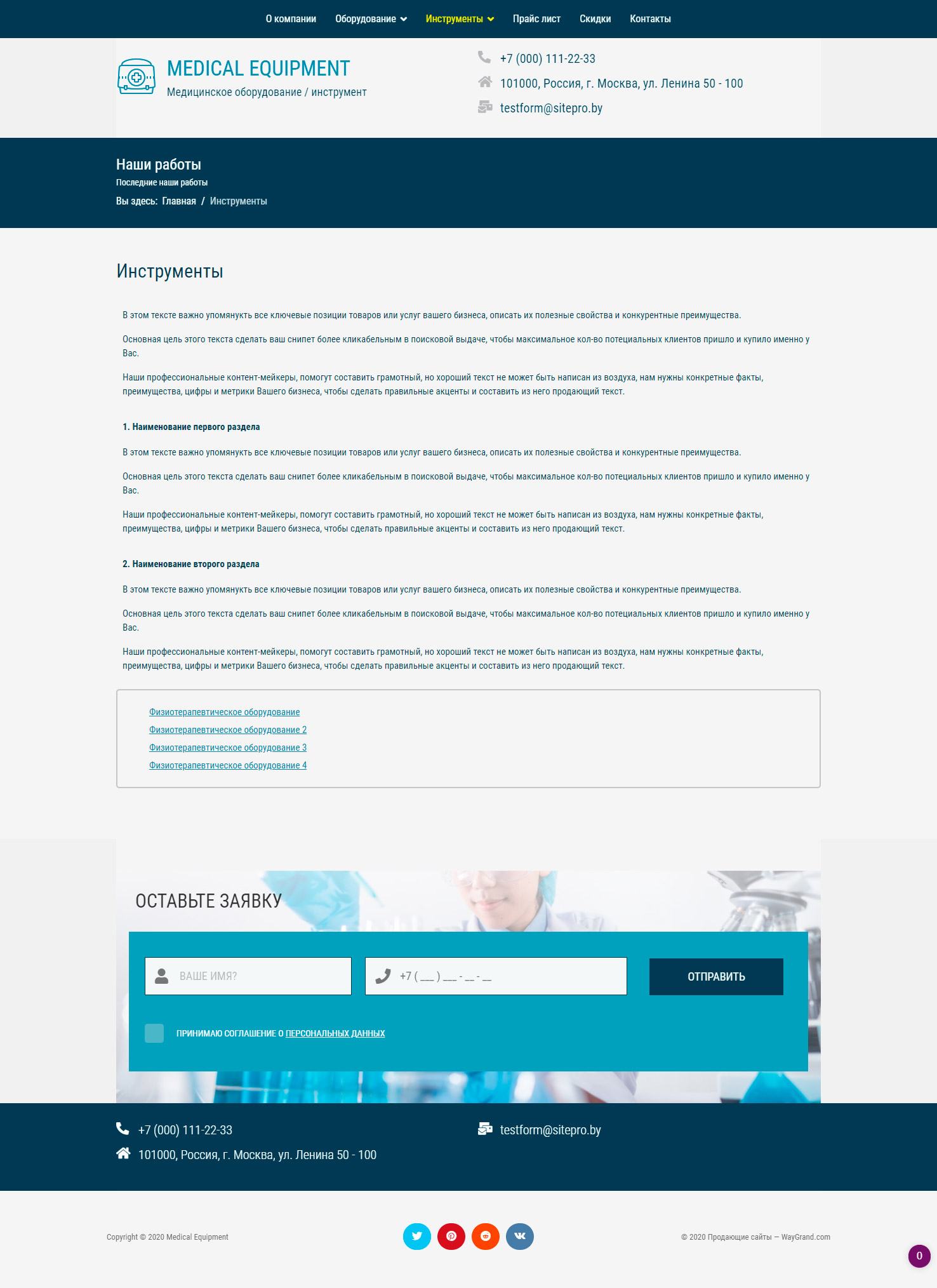 Закажите готовый продающий сайт визитка #1029301 в Волжском за 5-7 дня «под ключ»: свёрстан, отрисован и готов к рекламе. Тематика шаблона «Медицинское оборудование / инструмент».
