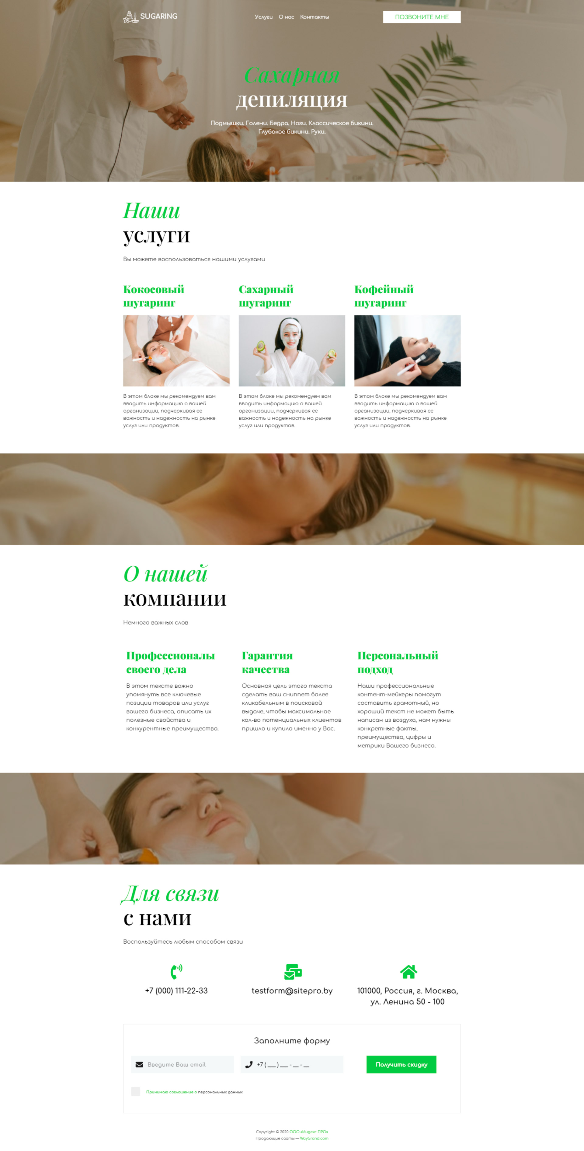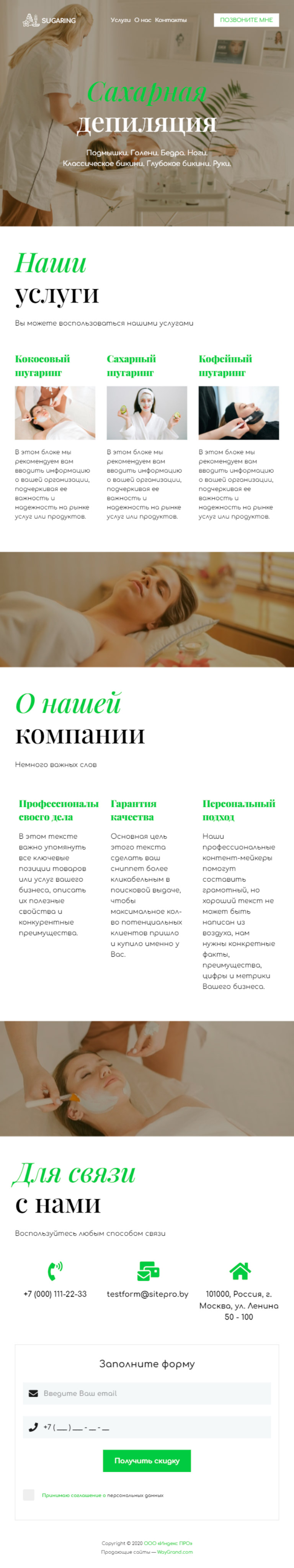 Закажите готовый продающий сайт визитка #1105101 в Волжском за 5-7 дня «под ключ»: свёрстан, отрисован и готов к рекламе. Тематика шаблона «Сахарная депиляция/Шугаринг».