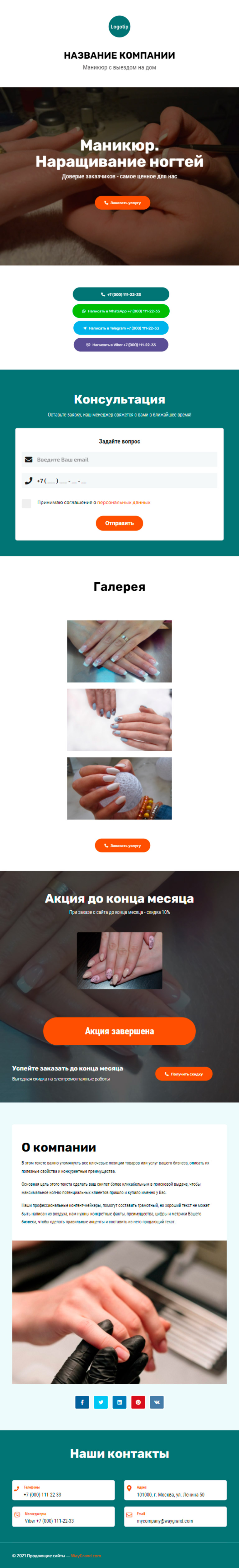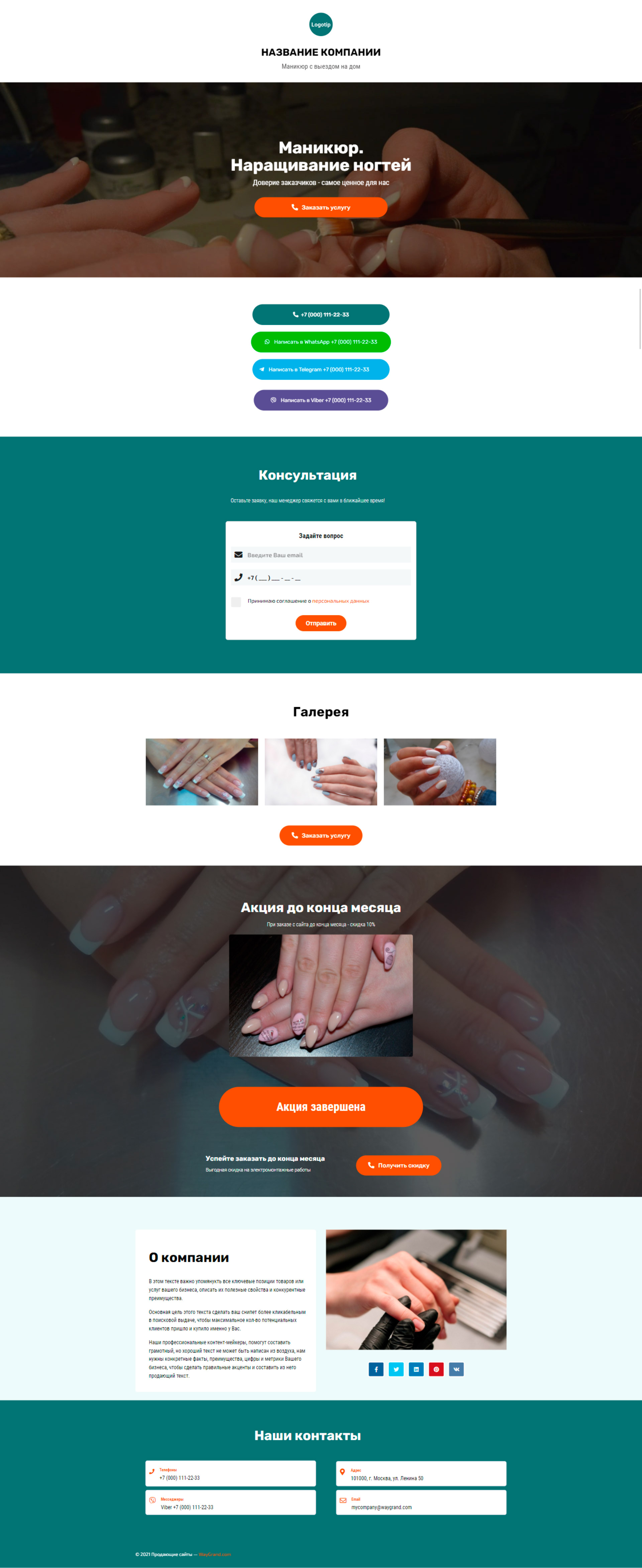Закажите готовый продающий сайт визитка #1107101 в Волжском за 5-7 дня «под ключ»: свёрстан, отрисован и готов к рекламе. Тематика шаблона «Маникюр. Наращивание ногтей».