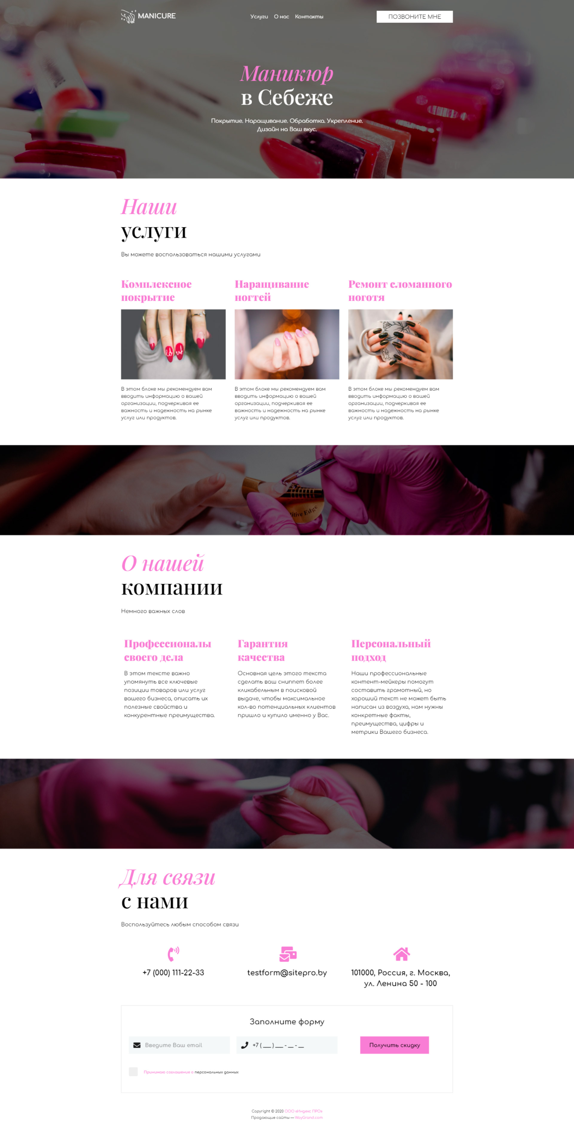 Закажите готовый продающий сайт визитка #1107102 в Волжском за 5-7 дня «под ключ»: свёрстан, отрисован и готов к рекламе. Тематика шаблона «Маникюр в Себеже».