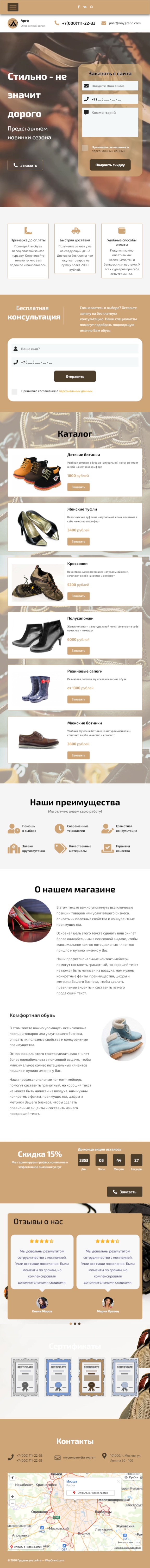 Закажите готовый продающий сайт лендинг #1516201 в Волжском за 1-3 дня «под ключ»: свёрстан, отрисован и готов к рекламе. Тематика шаблона «Обувь, стильная».