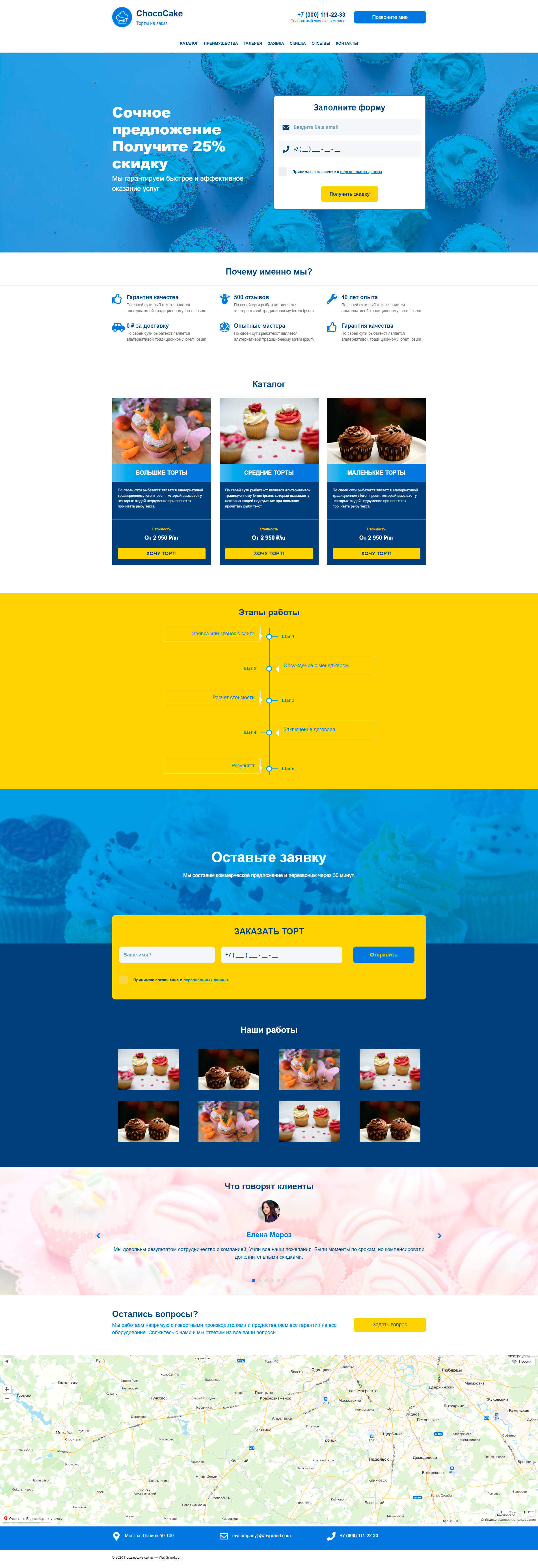 Закажите готовый продающий сайт лендинг #1711205 в Волжском за 1-3 дня «под ключ»: свёрстан, отрисован и готов к рекламе. Тематика шаблона «Торты на заказ».