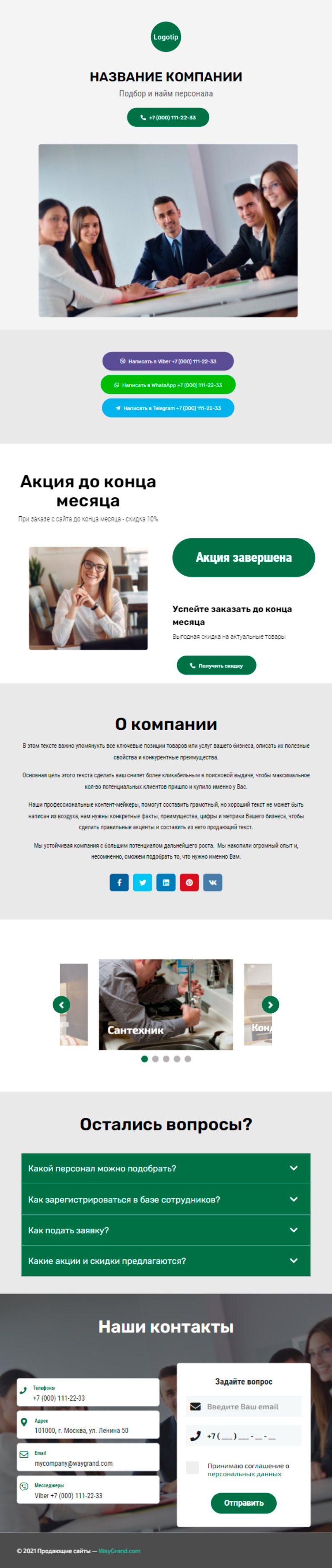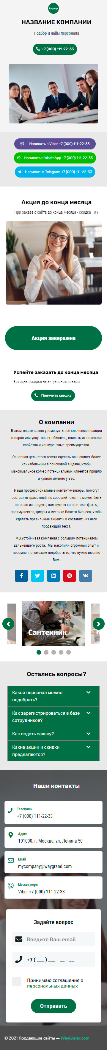 Закажите готовый продающий сайт визитка #1415101 в Волжском за 5-7 дня «под ключ»: свёрстан, отрисован и готов к рекламе. Тематика шаблона «Подбор и найм персонала».