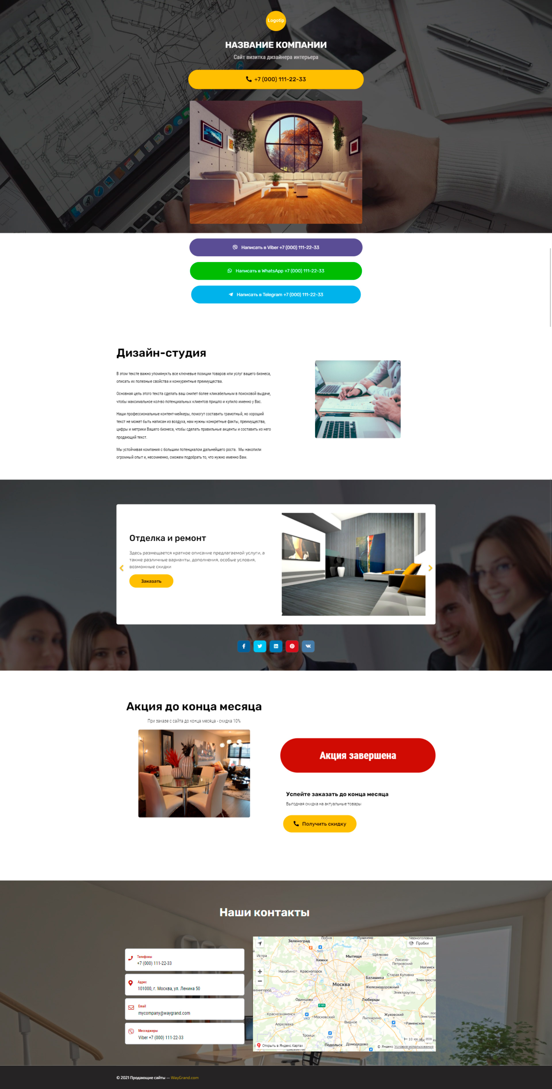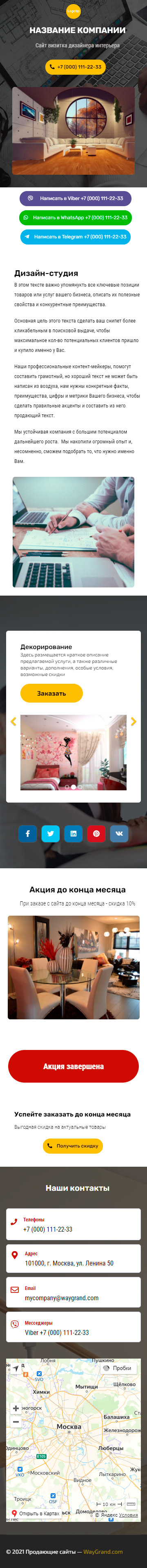 Закажите готовый продающий сайт визитка #2124101 в Волжском за 5-7 дня «под ключ»: свёрстан, отрисован и готов к рекламе. Тематика шаблона «Дизайн интерьеров».