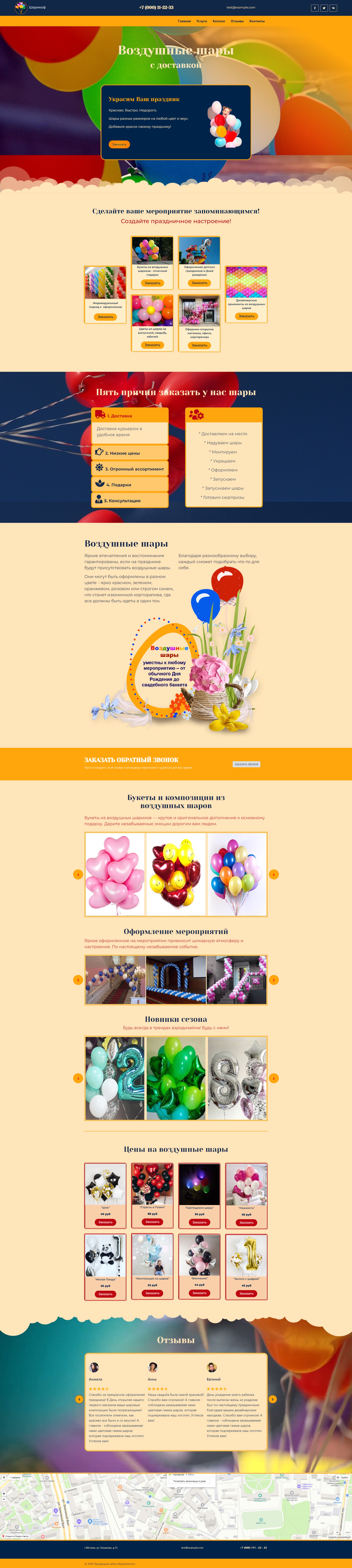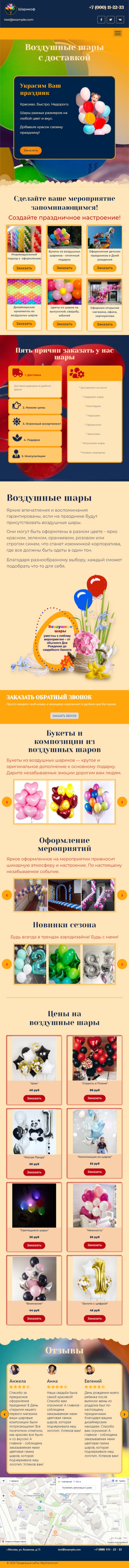 Закажите готовый продающий сайт лендинг #2427202 в Волжском за 1-3 дня «под ключ»: свёрстан, отрисован и готов к рекламе. Тематика шаблона «Воздушные шары».