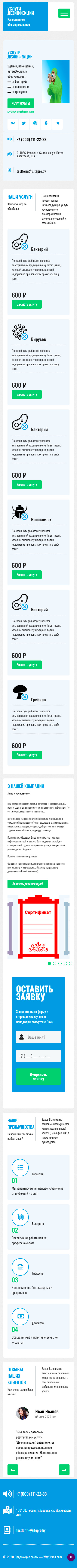Закажите готовый продающий сайт лендинг #0608201 в Волжском за 1-3 дня «под ключ»: свёрстан, отрисован и готов к рекламе. Тематика шаблона «Услуги дезинфекции».
