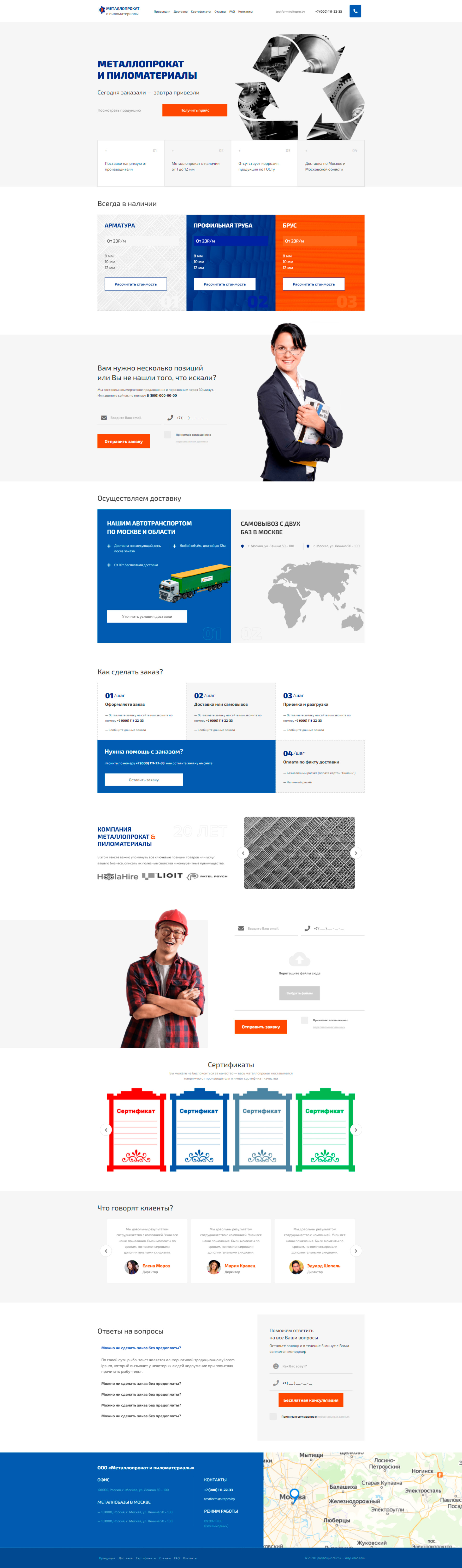 - Промоблок "Металлопрокат и пиломатериалы" с кнопкой призыва к действию "Получить прайс"