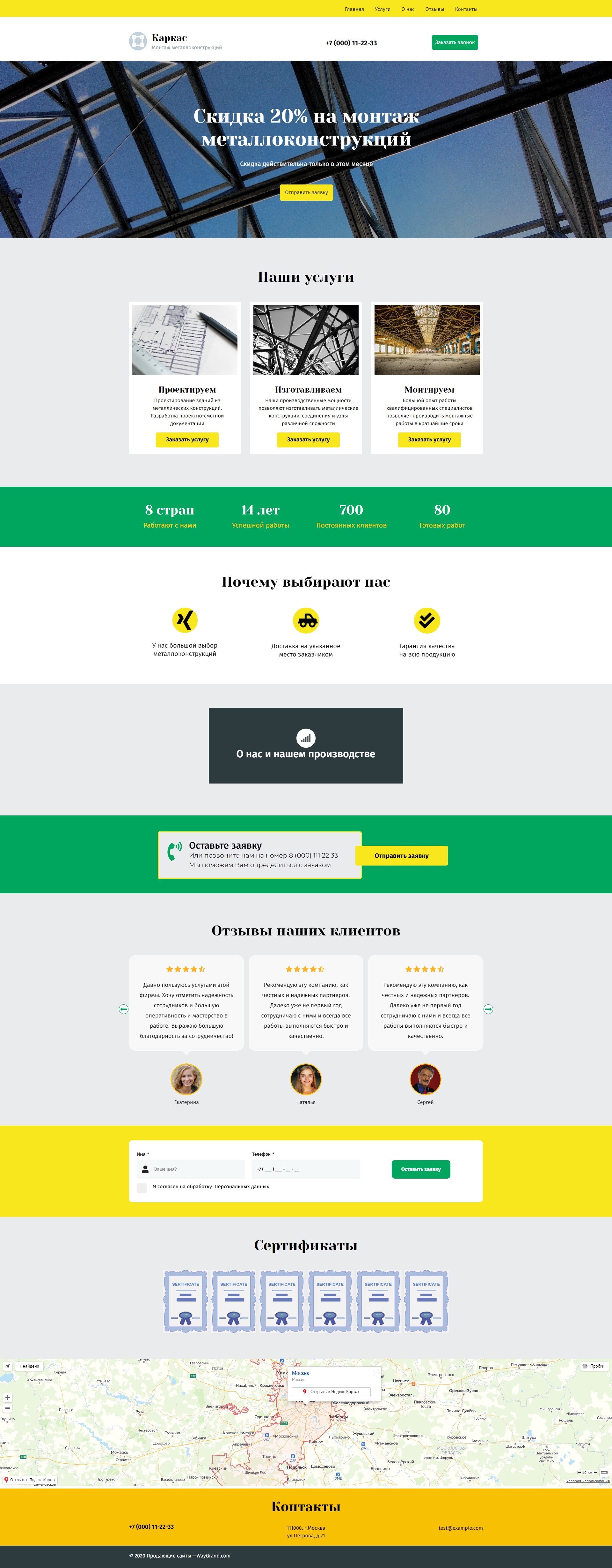 Закажите готовый продающий сайт лендинг #2027201 в Волжском за 1-3 дня «под ключ»: свёрстан, отрисован и готов к рекламе. Тематика шаблона «Металлоконструкции».