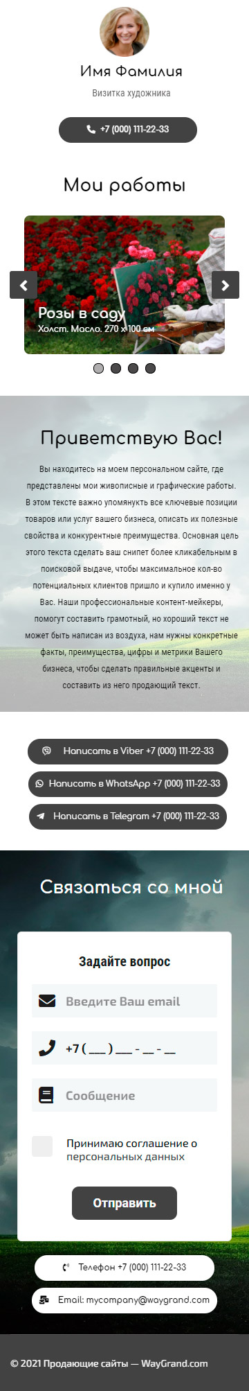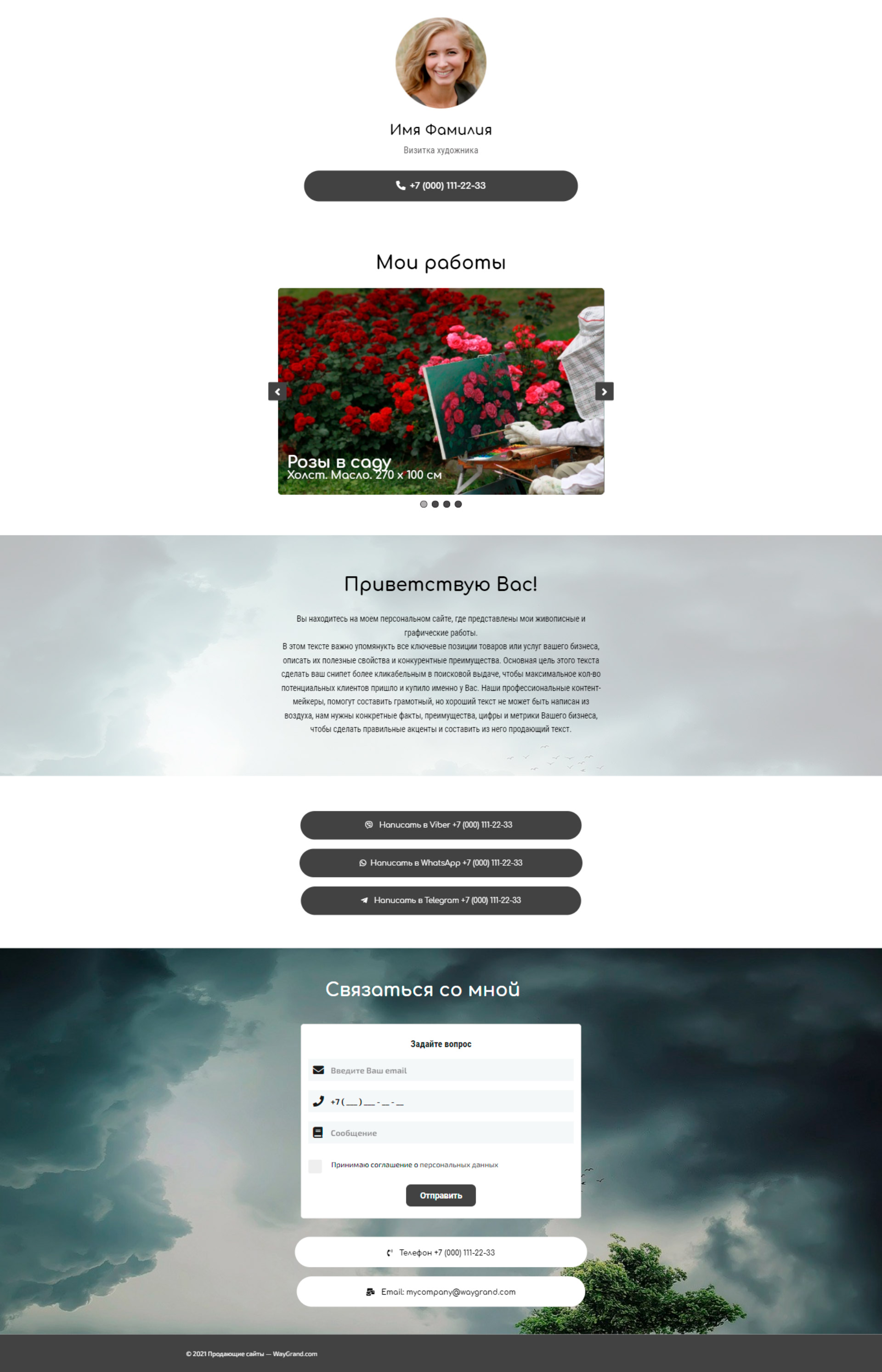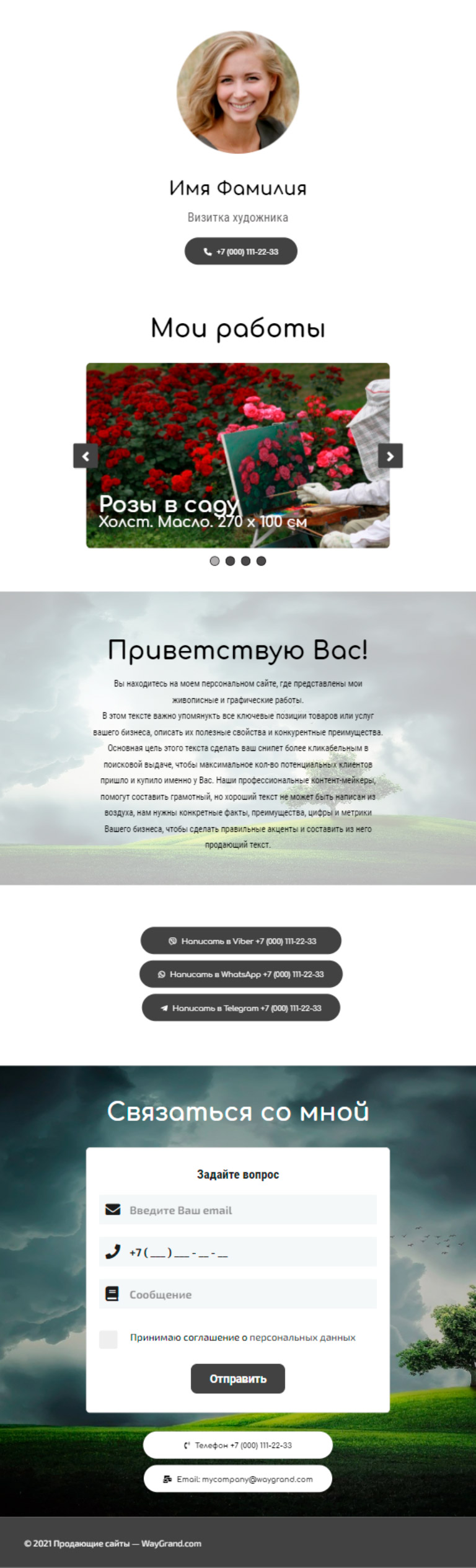 Закажите готовый продающий сайт визитка #0826101 в Волжском за 5-7 дня «под ключ»: свёрстан, отрисован и готов к рекламе. Тематика шаблона «Визитка художника».
