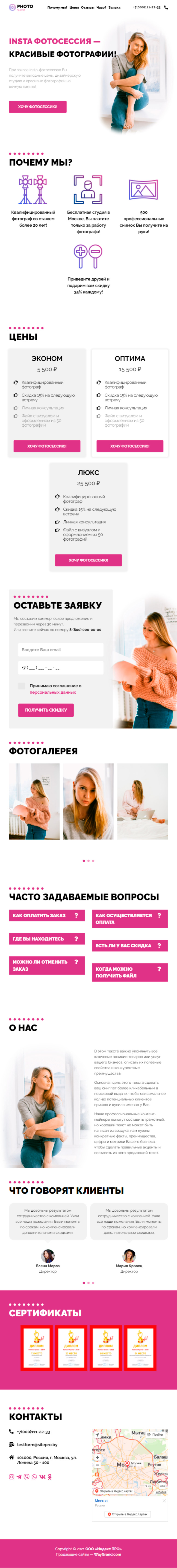 Закажите готовый продающий сайт лендинг #1853201 в Волжском за 1-3 дня «под ключ»: свёрстан, отрисован и готов к рекламе. Тематика шаблона «INSTA фотосессия — лучший подарок».
