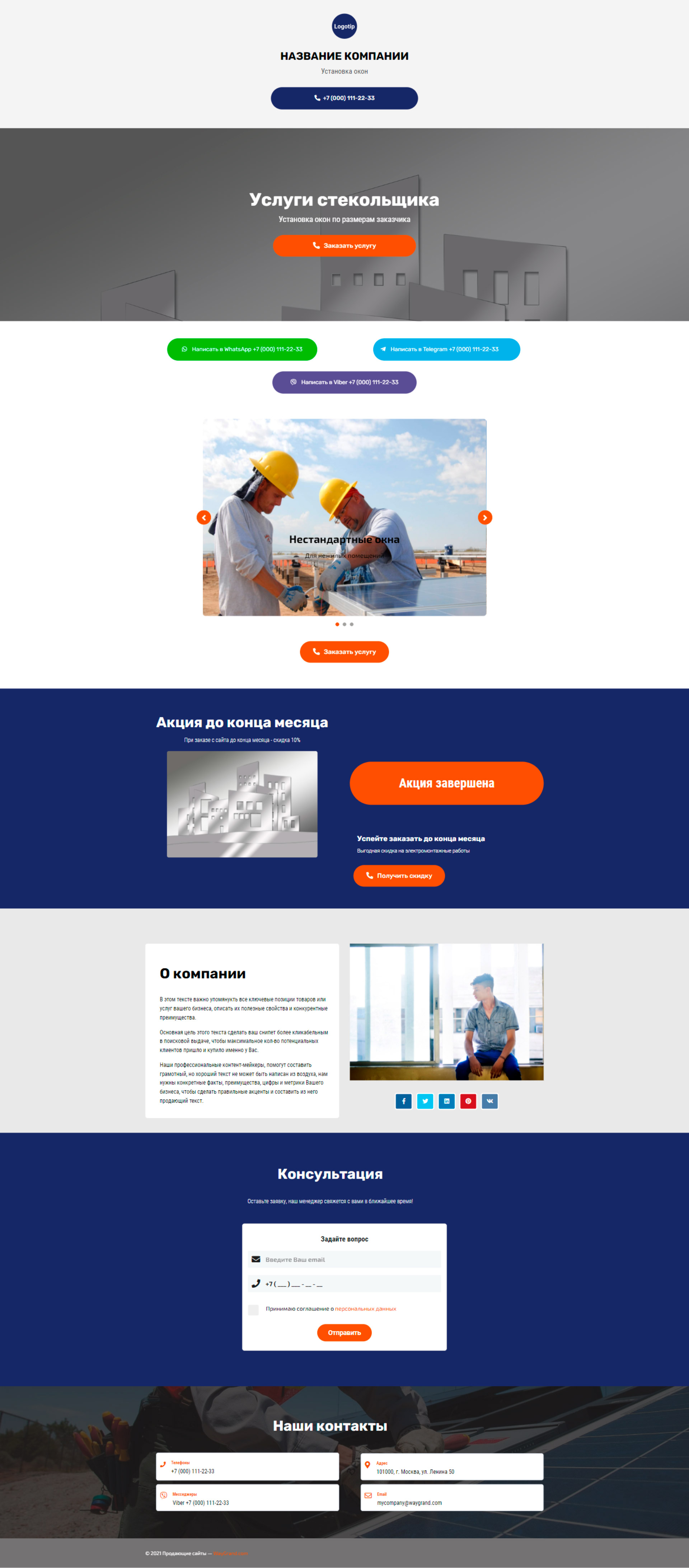 Закажите готовый продающий сайт визитка #2138101 в Волжском за 5-7 дня «под ключ»: свёрстан, отрисован и готов к рекламе. Тематика шаблона «Установка окон».