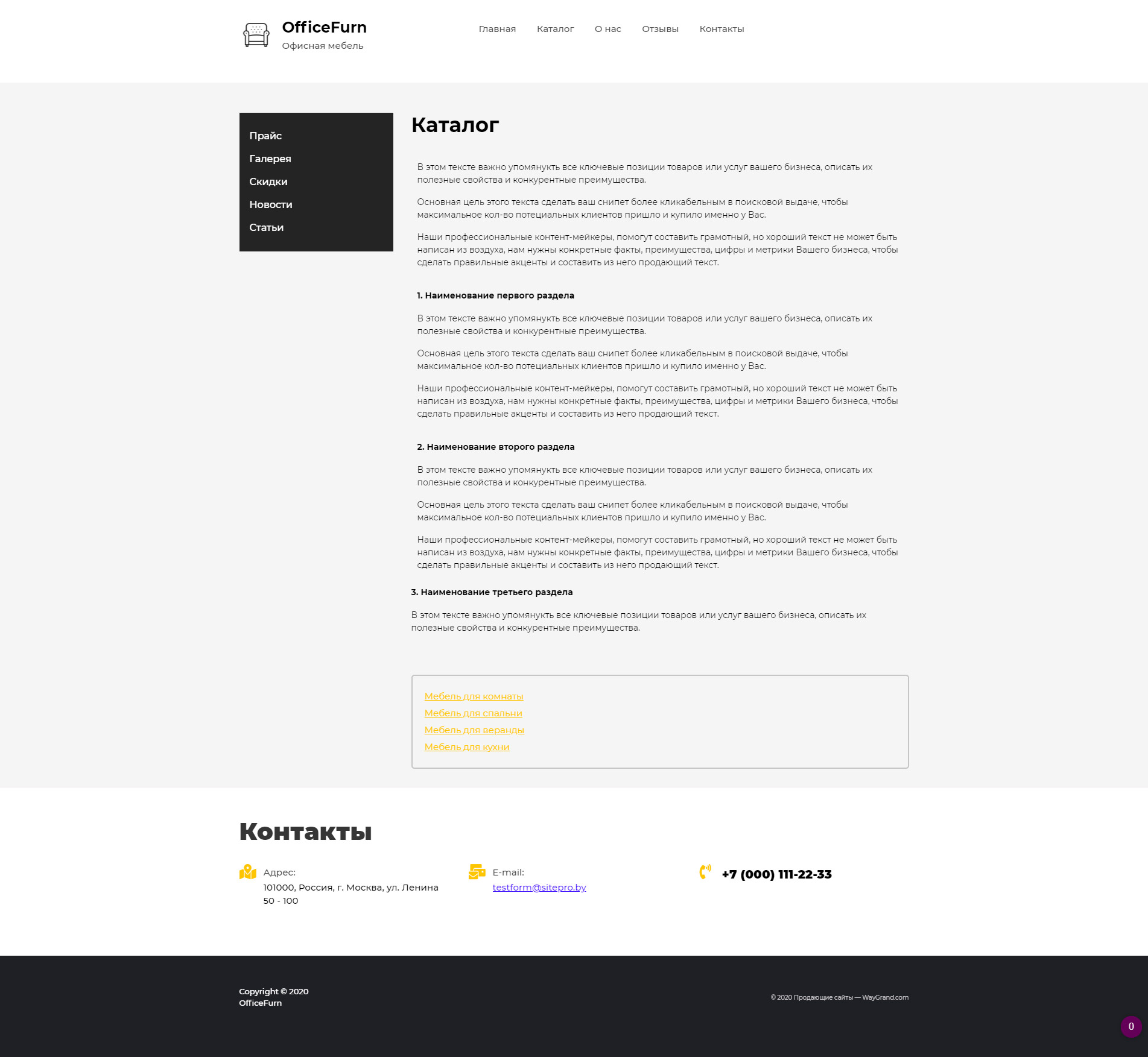 Закажите готовый продающий сайт визитка #0921301 в Волжском за 5-7 дня «под ключ»: свёрстан, отрисован и готов к рекламе. Тематика шаблона «Офисная мебель».