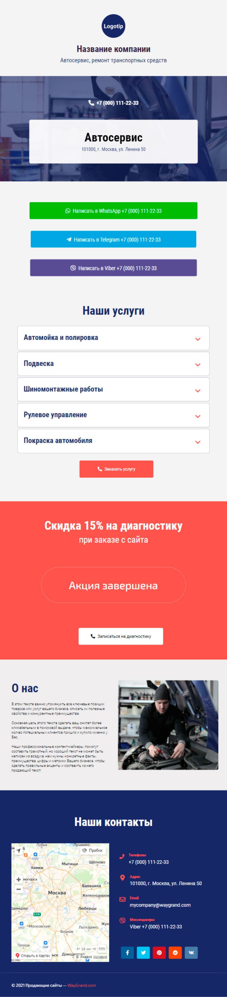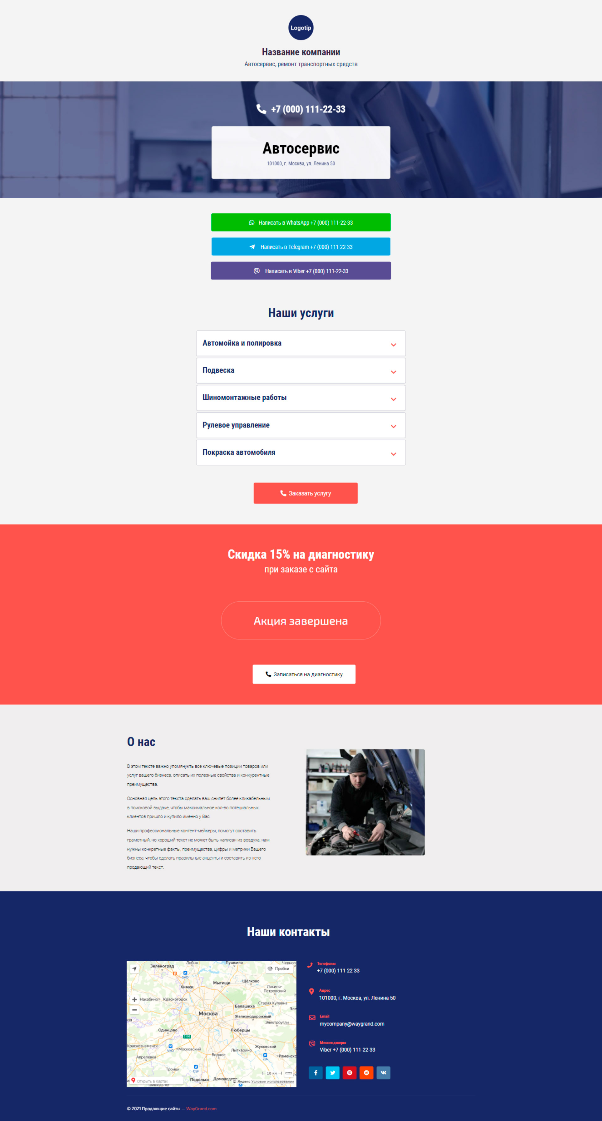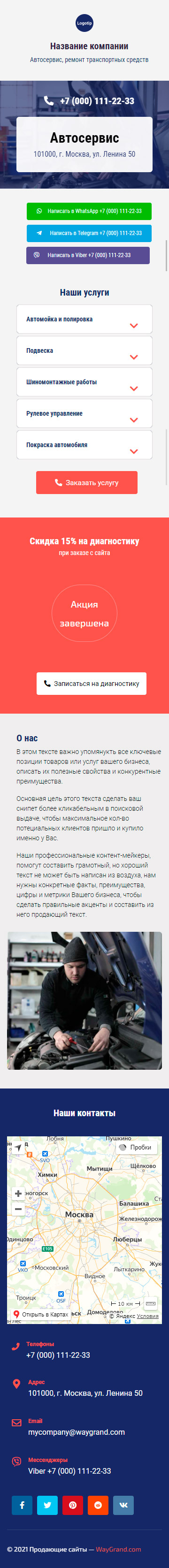 Закажите готовый продающий сайт визитка #0210101 в Волжском за 5-7 дня «под ключ»: свёрстан, отрисован и готов к рекламе. Тематика шаблона «Автосервис, ремонт транспортных средств».
