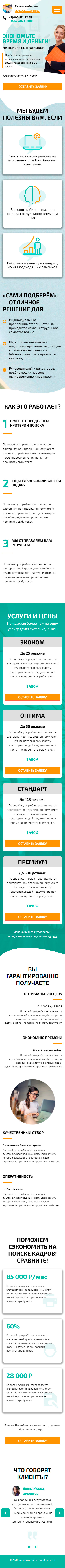 - Блок "Поможем сэкономить на поиске кадров"