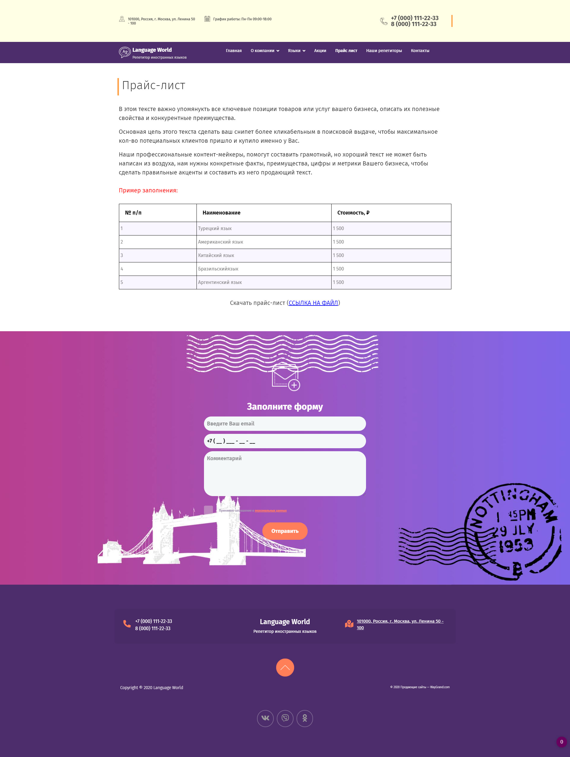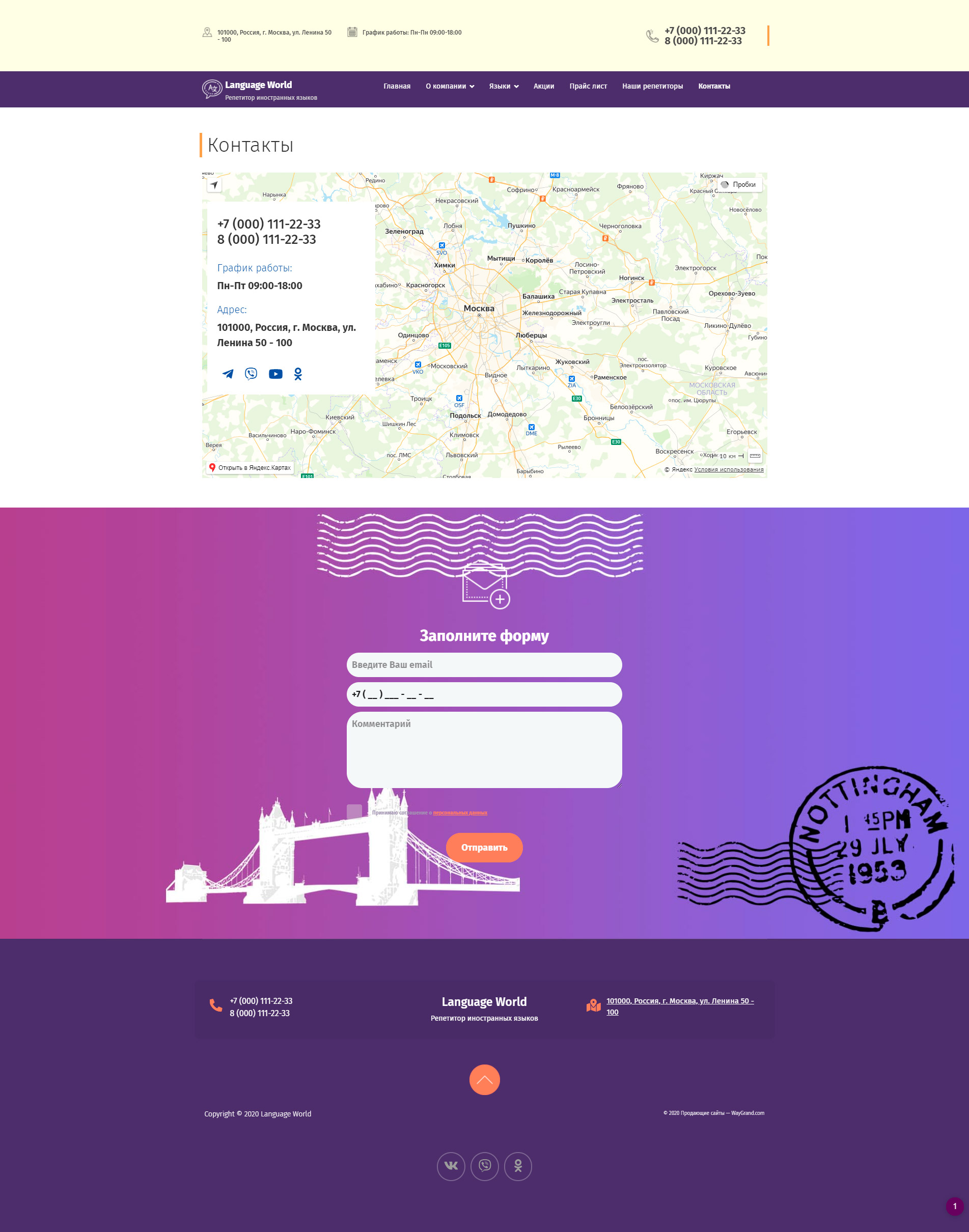 Закажите готовый продающий сайт визитка #1448301 в Волжском за 5-7 дня «под ключ»: свёрстан, отрисован и готов к рекламе. Тематика шаблона «Курсы иностранных языков».