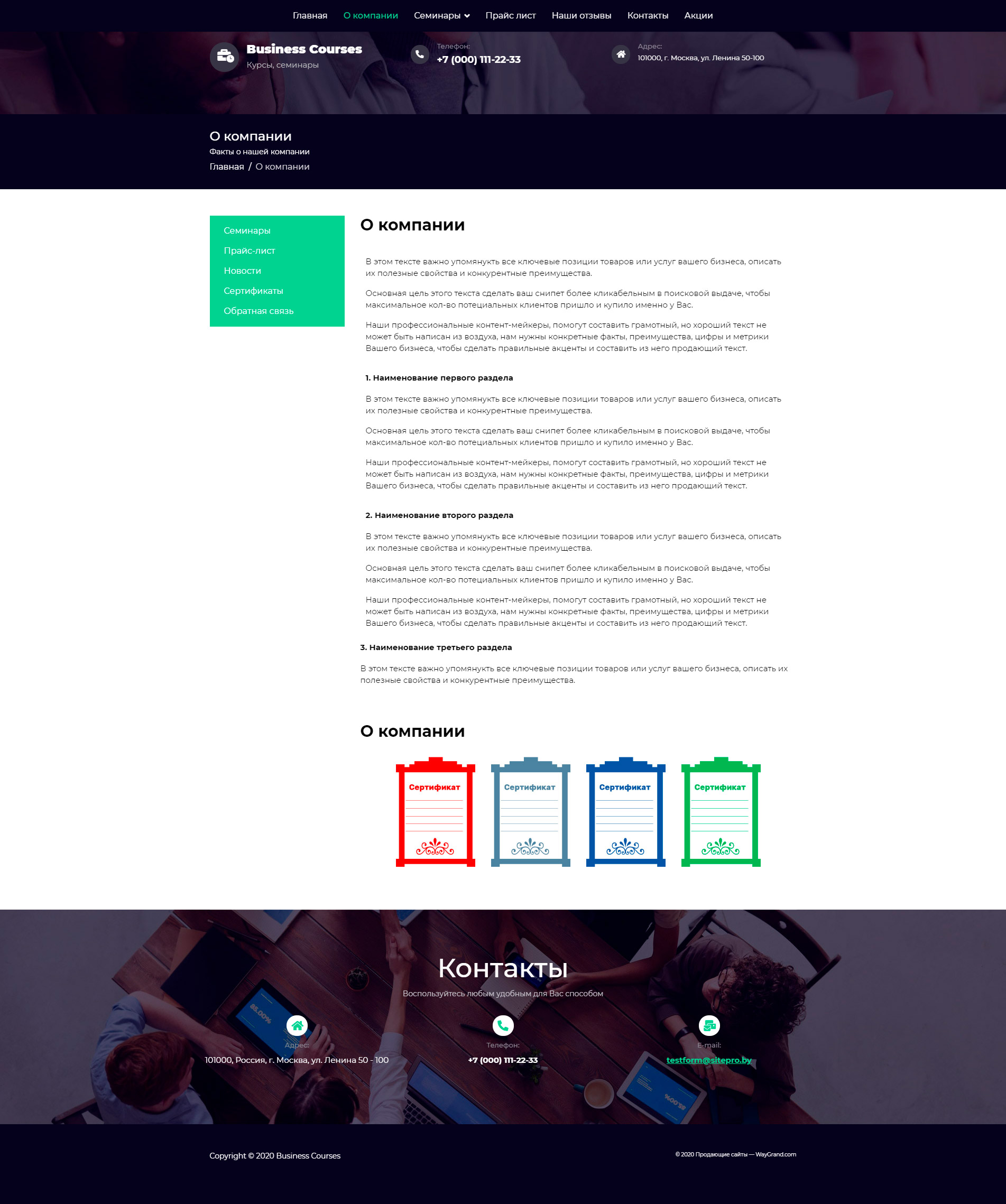 Закажите готовый продающий сайт визитка #1448303 в Волжском за 5-7 дня «под ключ»: свёрстан, отрисован и готов к рекламе. Тематика шаблона «Бизнес курсы и семинары».