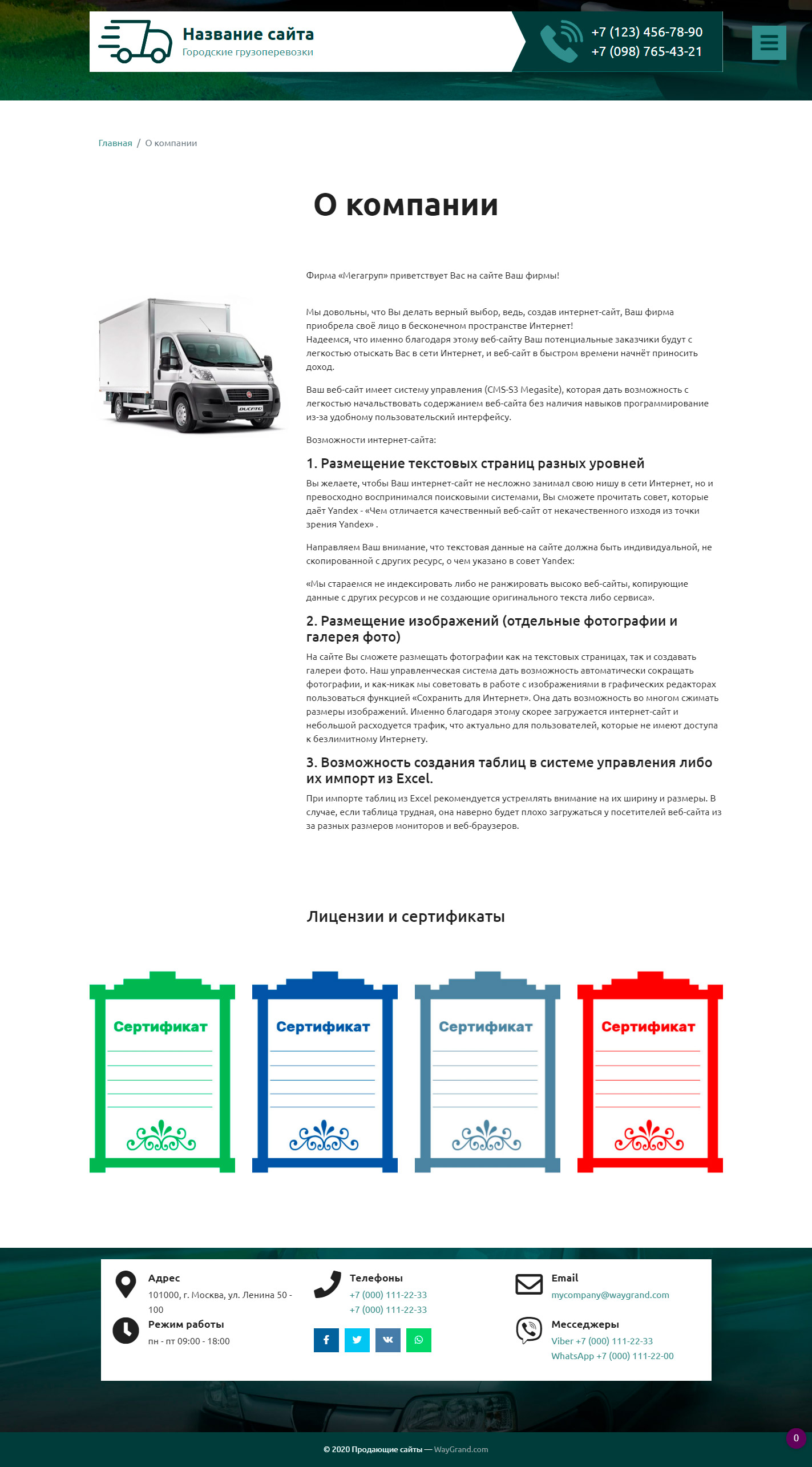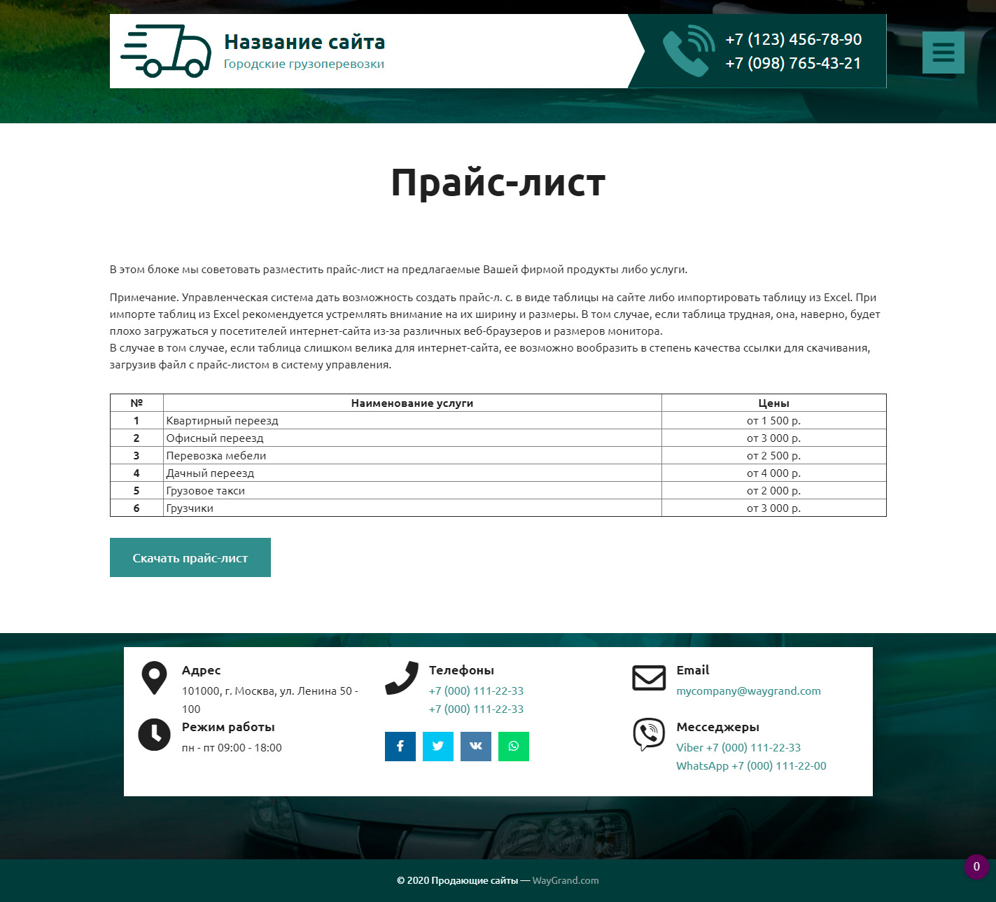 Закажите готовый продающий сайт визитка #2515302 в Волжском за 5-7 дня «под ключ» по доступным ценам на WayGrand: свёрстан, отрисован и готов к рекламе. Тематика шаблона «Городские грузоперевозки».