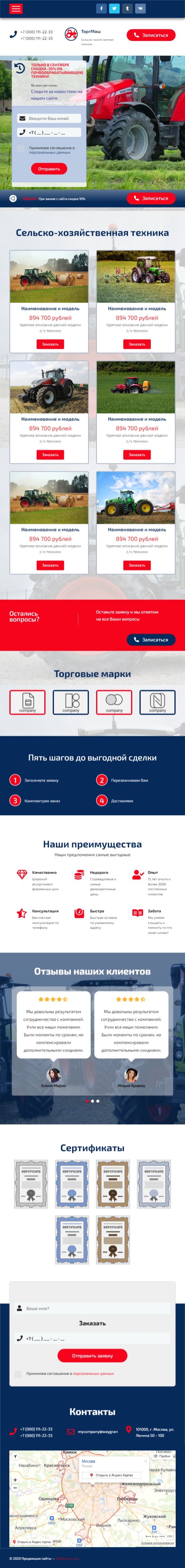 Закажите готовый продающий сайт лендинг #2553202 в Волжском за 1-3 дня «под ключ»: свёрстан, отрисован и готов к рекламе. Тематика шаблона «Сельско-хозяйственная техника».