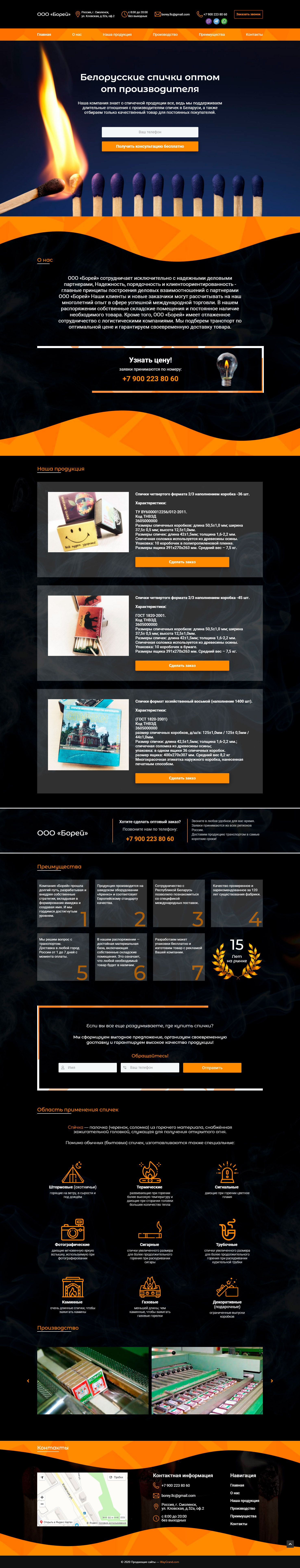 Закажите готовый продающий сайт лендинг #115 в Волжском за 1-3 дня «под ключ»: свёрстан, отрисован и готов к рекламе. Тематика шаблона «Белорусские спички оптом от производителя».