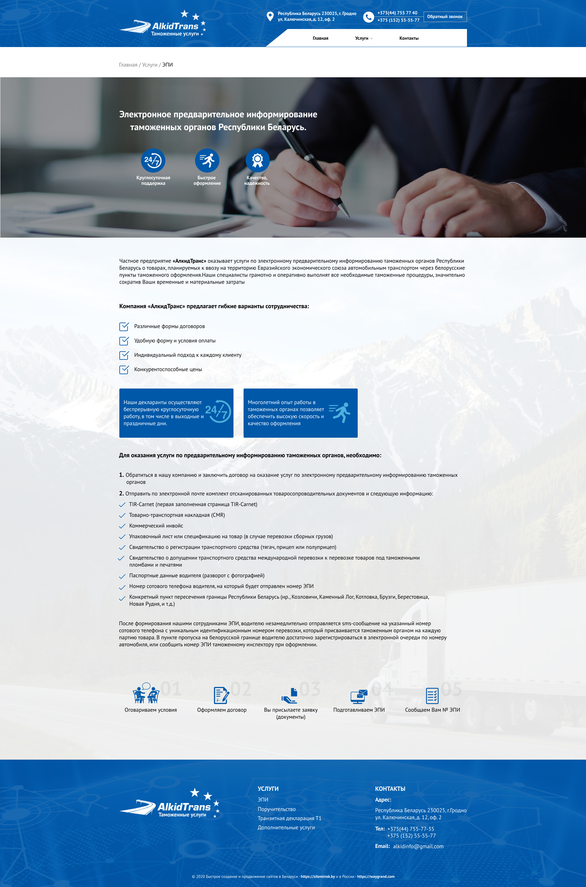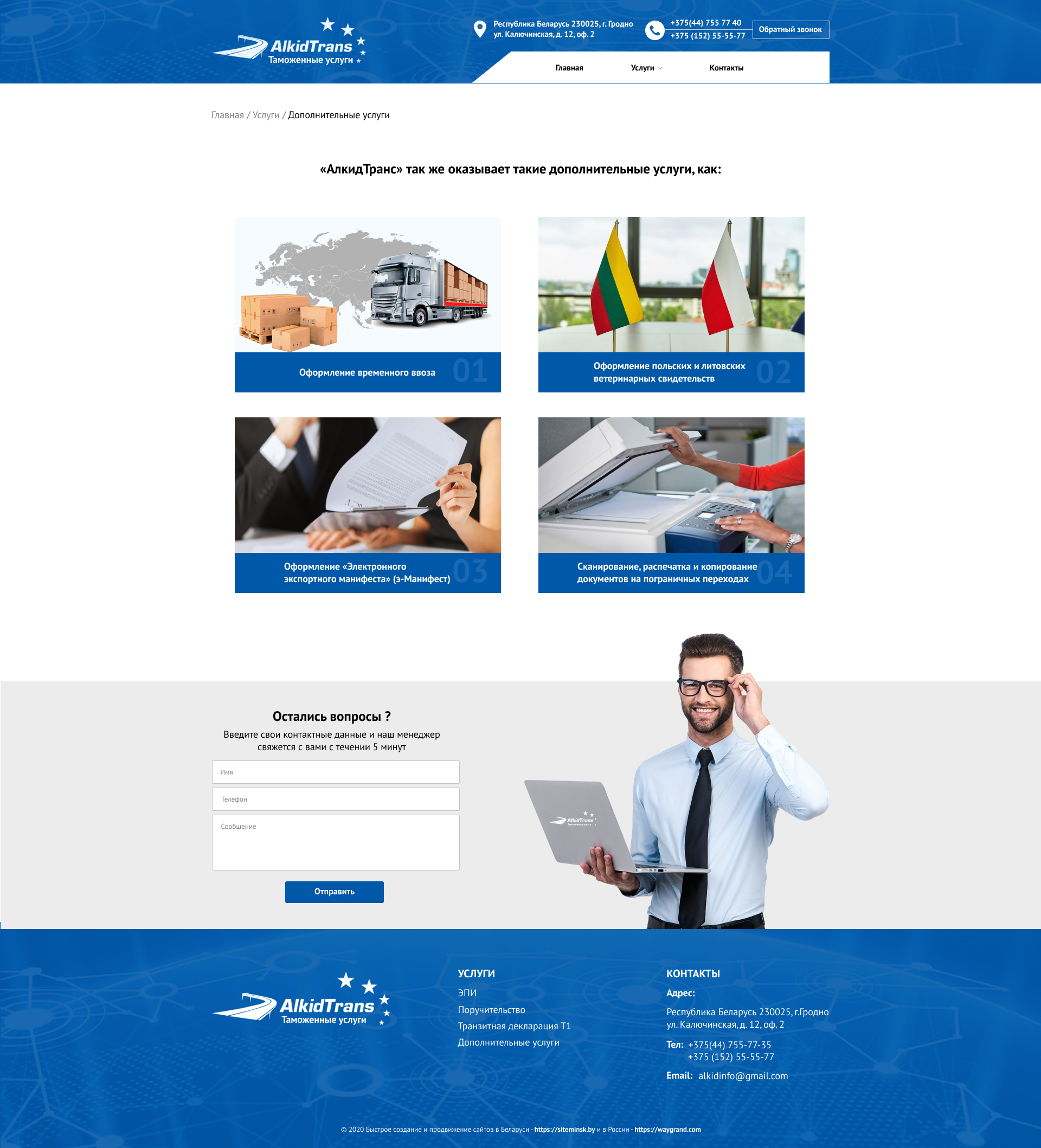 Закажите готовый продающий сайт визитка #234 в Волжском за 5-7 дня «под ключ»: свёрстан, отрисован и готов к рекламе. Тематика шаблона «Таможенные услуги».