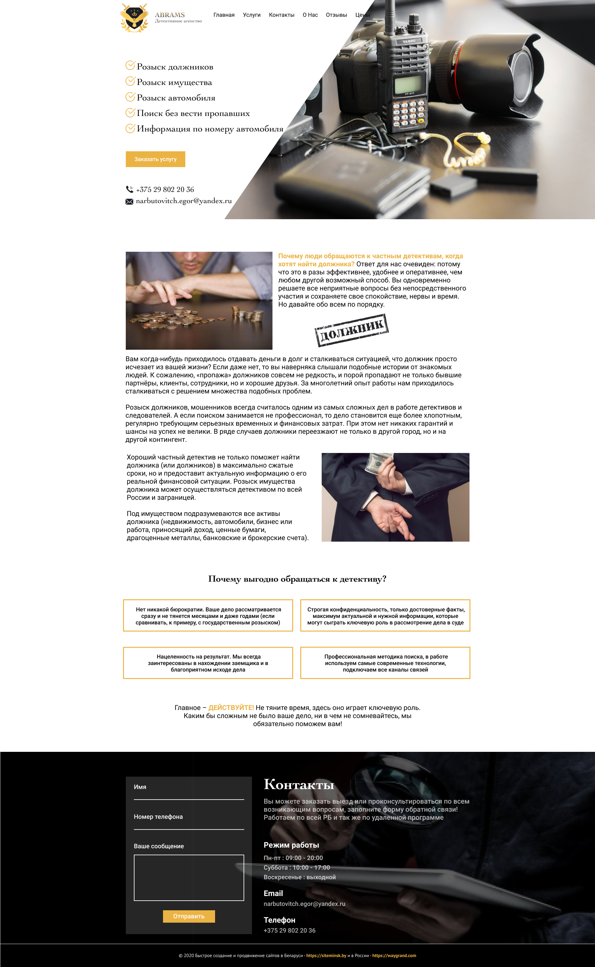 Закажите готовый продающий сайт визитка #239 в Волжском за 5-7 дня «под ключ»: свёрстан, отрисован и готов к рекламе. Тематика шаблона «Частное детективное агентство».