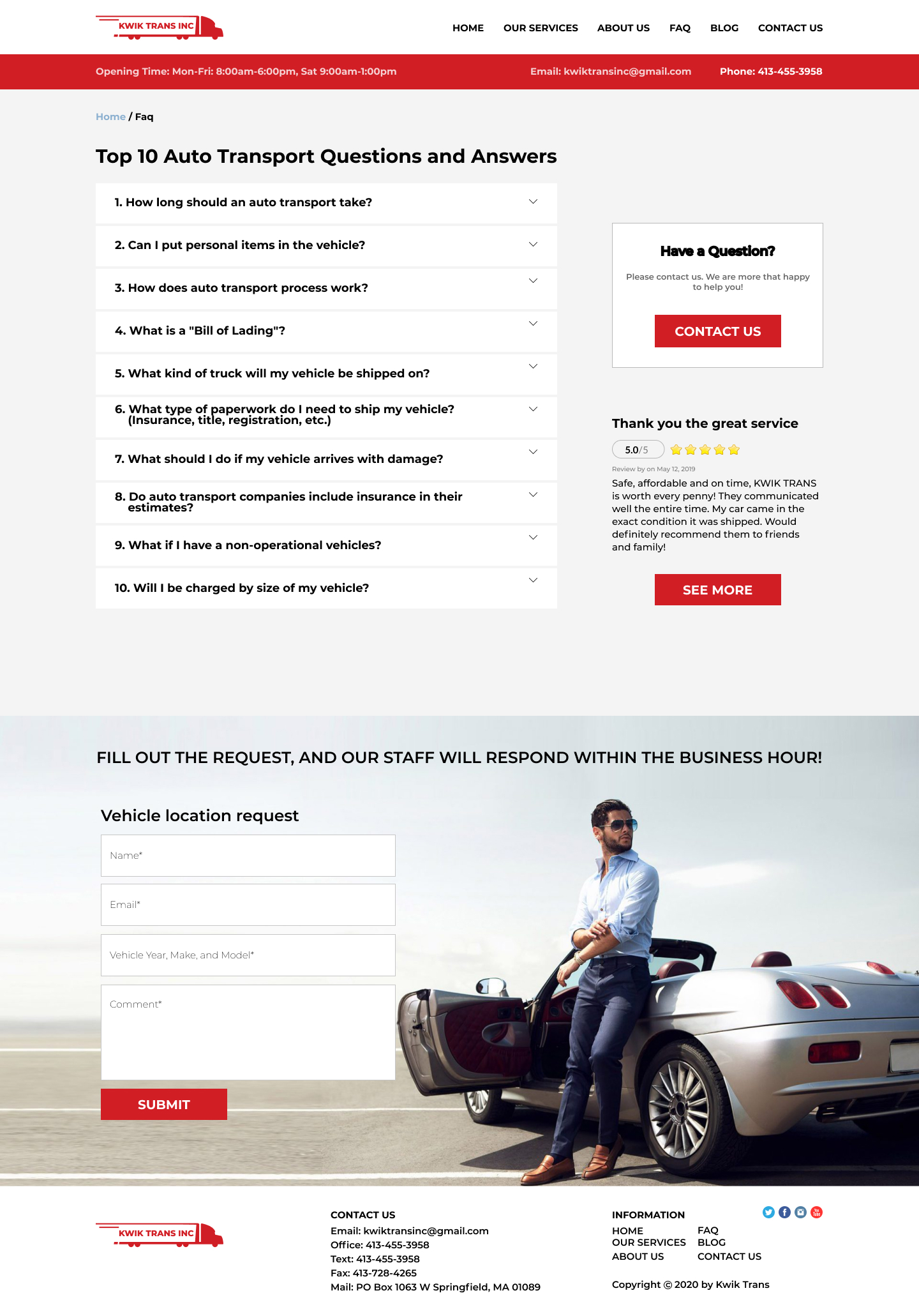 Закажите готовый продающий сайт визитка #223 в Волжском за 5-7 дня «под ключ»: свёрстан, отрисован и готов к рекламе. Тематика шаблона «Safe & Reliable National Auto Transport».
